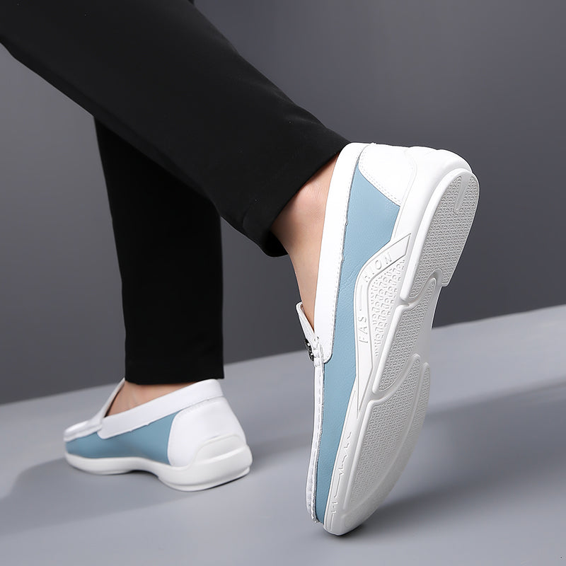 Crafted from genuine leather, these one-of-a-kind loafers feature a unique two-tone design that adds class and sophistication to your look. Enjoy the comfort of a cushioned footbed and a durable rubber sole that provides reliable grip all day long.