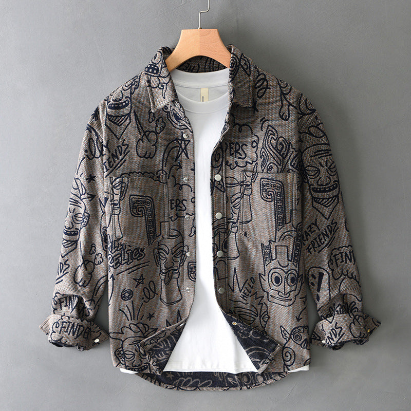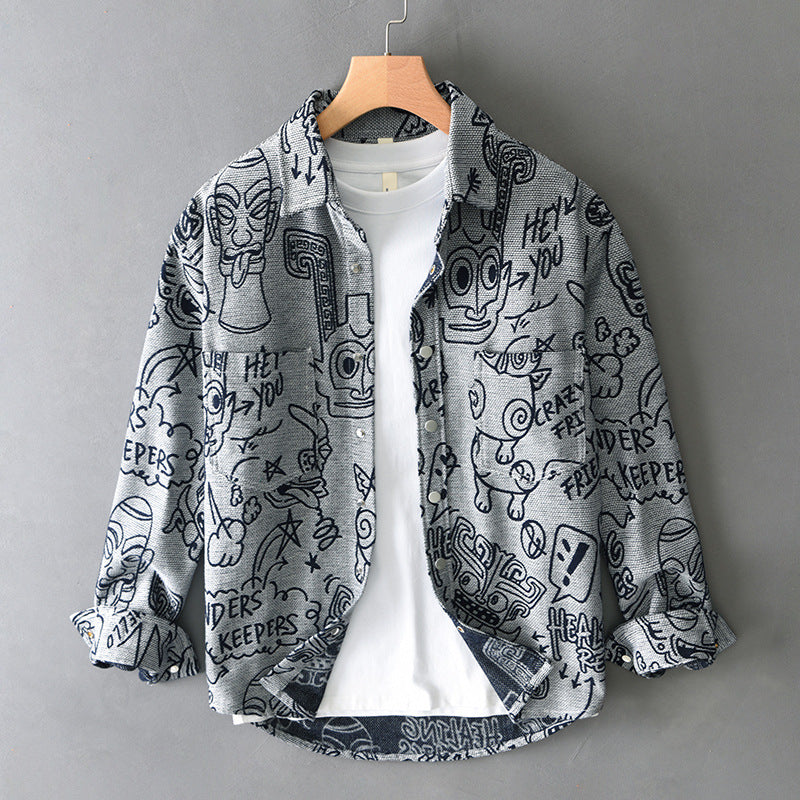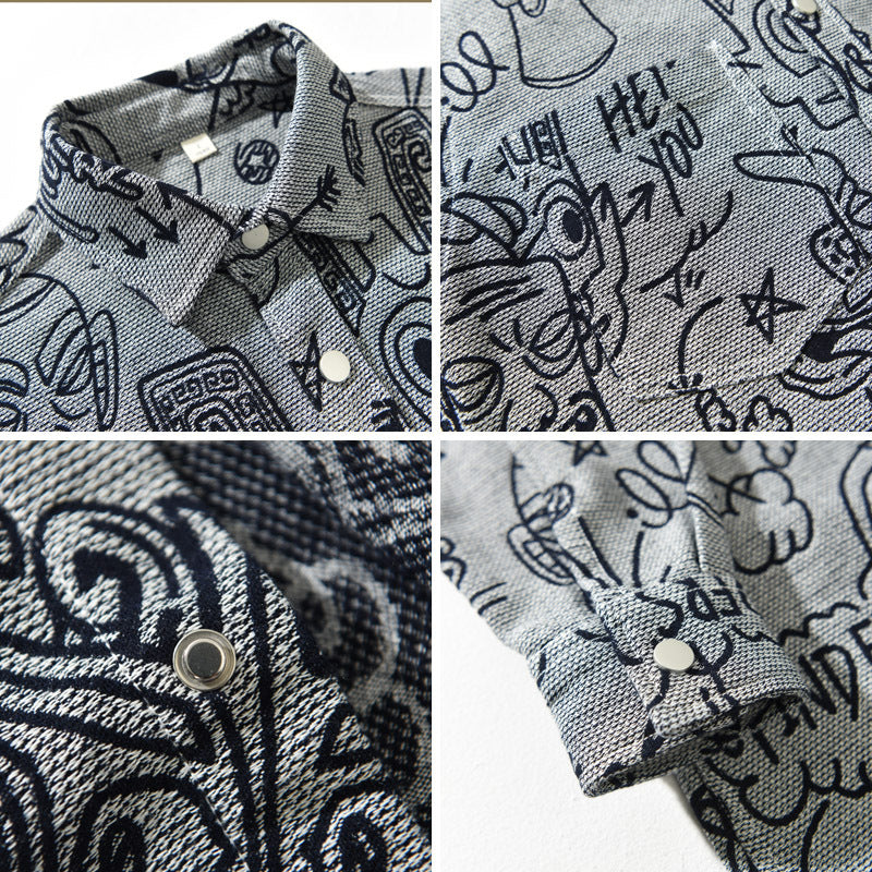 Zeig deinen einzigartigen Style mit diesem Hemd voller lustiger Kritzelmotive, gefertigt aus einem coolen und bequemen Baumwoll-Mix – perfekt für jede Jahreszeit.