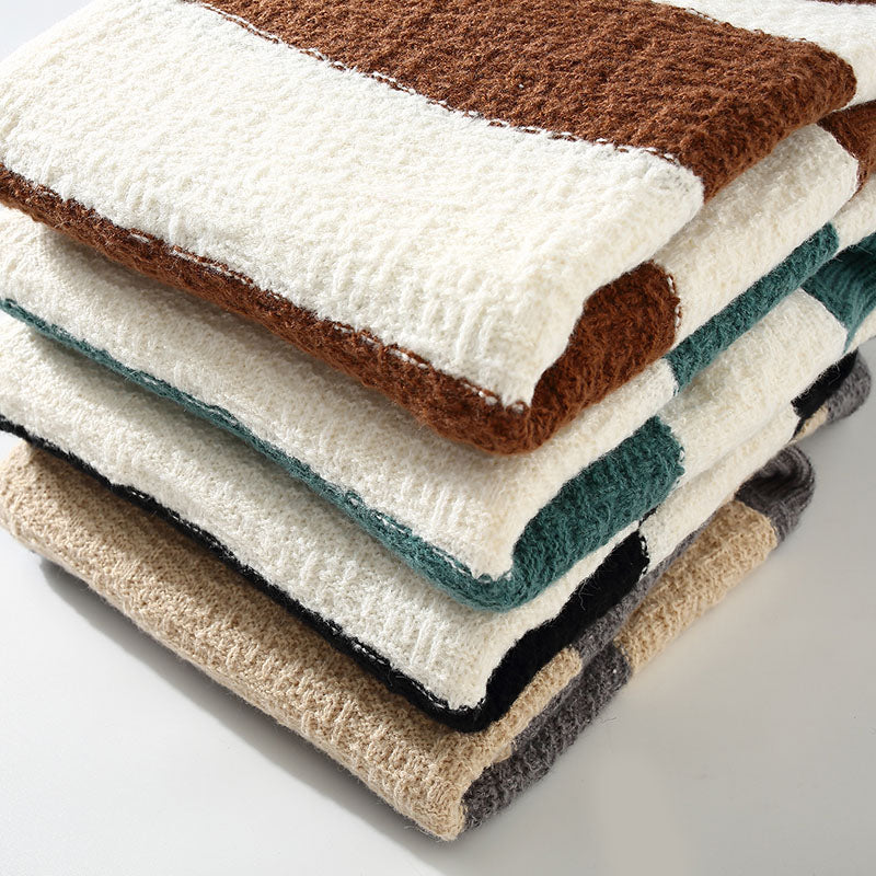Mitseinem lockeren Schnitt und dem weichen Chunky-Strick ist er dein idealer Begleiter für gemütliche Tage voller Stil und Komfort. Die breiten, horizontalen Streifen sorgen für einen echten Hingucker – perfekt für alle, die auffallen wollen.