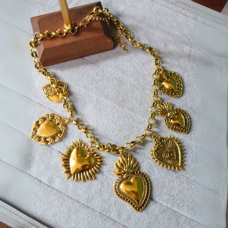 Embrace the bohemian spirit with a necklace that blends symbols of love and mystique, each pendant intricately weaving a tale of cultural heritage and artisan skill. Ideal for gift-giving or enjoying as a personal indulgence, it captures the essence of heartfelt artistry.